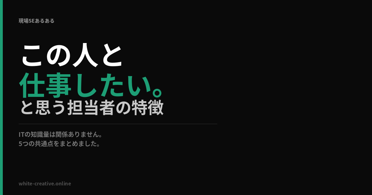 「この人と仕事したい」と思う担当者には、共通する特徴があります。ITの知識量とは関係ありません。むしろ知識がなくても、この特徴を持っている担当者との仕事は、気持ちよく進みます。